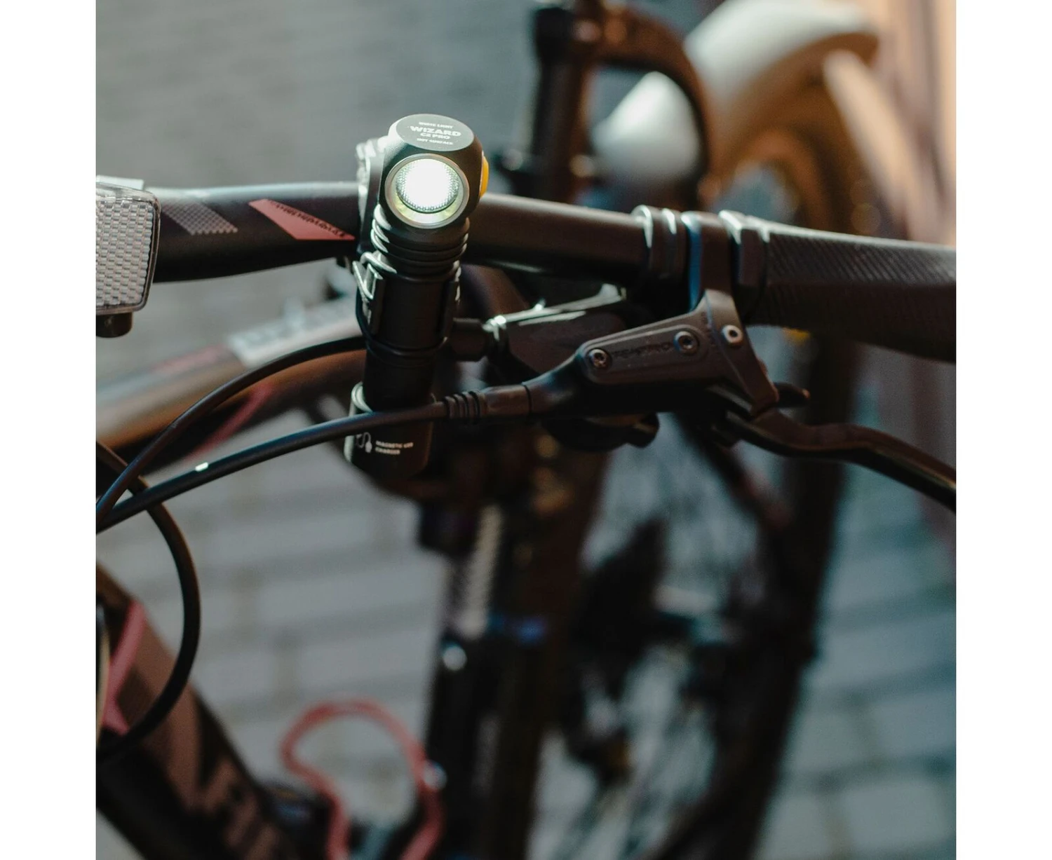 The set includes comfortable headmount, clip for attaching to clothes or a backpack, and durable nylon holster. Wizard C2 Pro is compatible with bicycle mount ABM-01 and AHM series helmet mounts for industrial works and mountaineering.