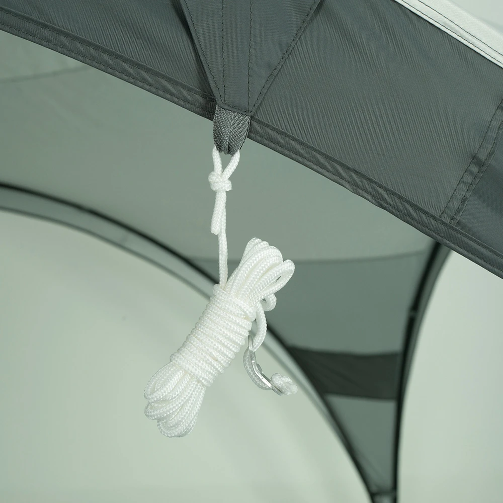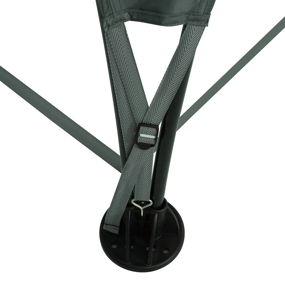 - Full steel frame combined with a heavy duty 150 Denier, 1000mm water rated, seam sealed canopy built to withstand strong winds and light rain