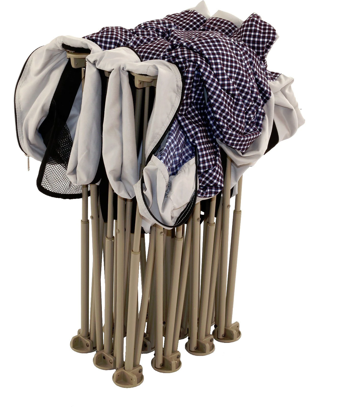 Compact, lightweight high-tensile steel frame expands into a bed with ease
