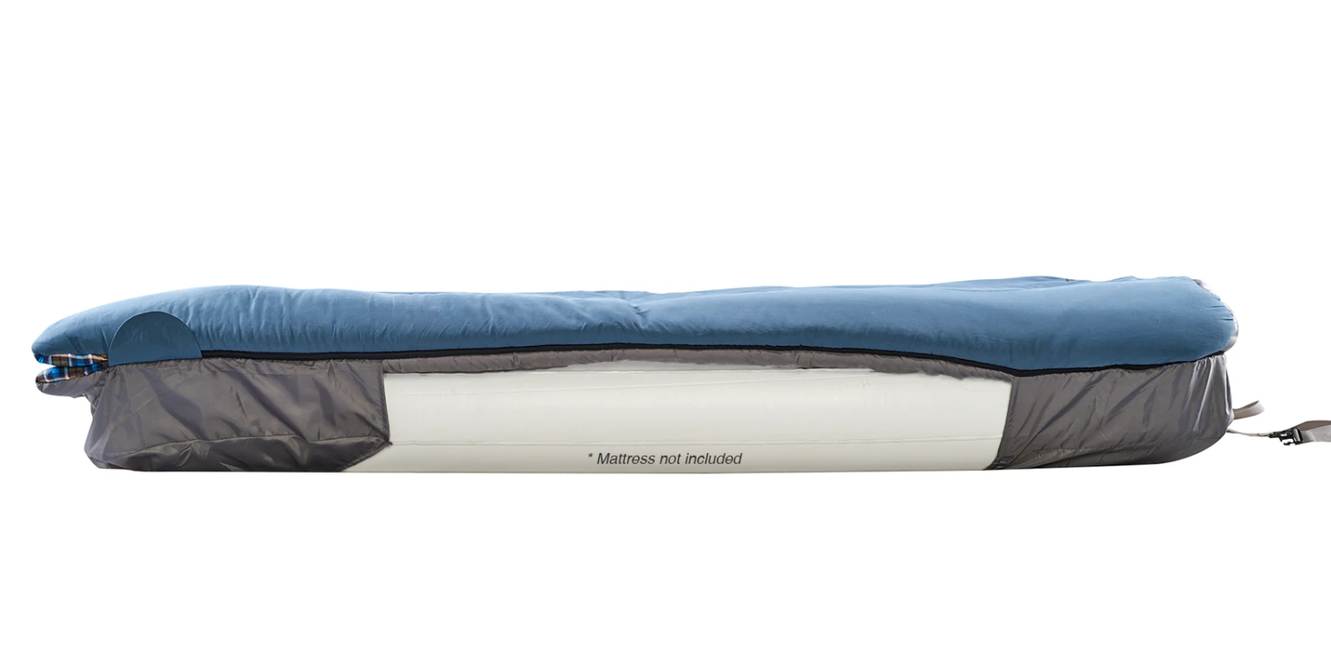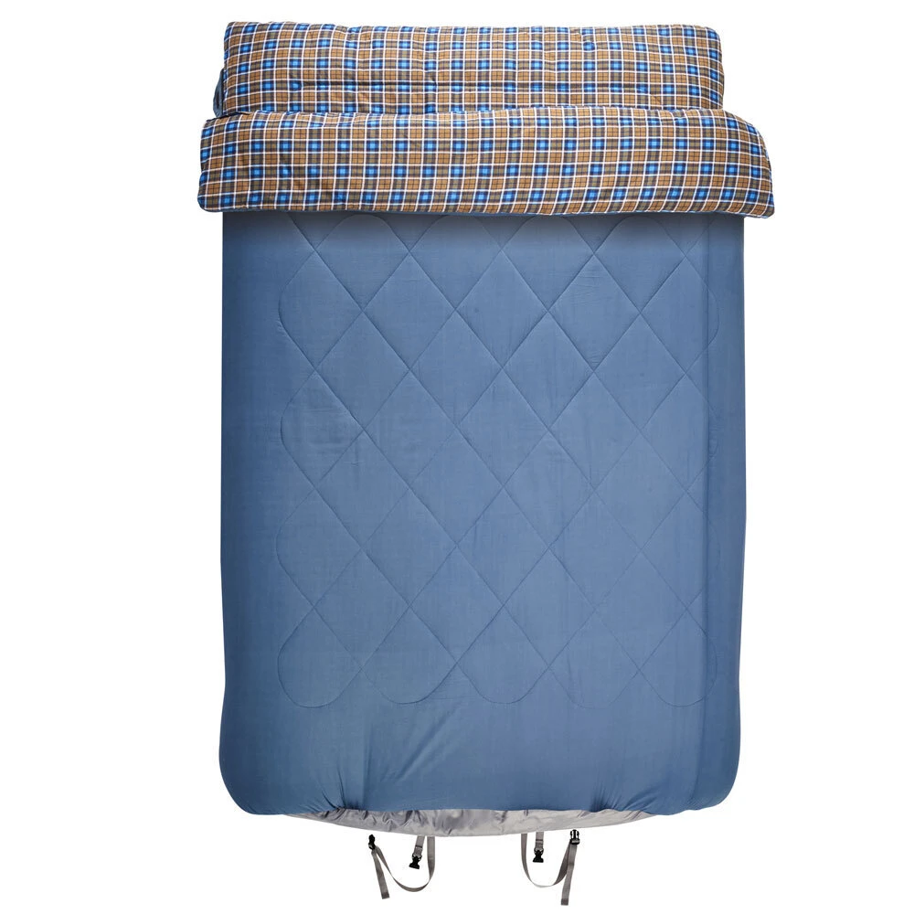 The complete camp bedding in a bag, tailored to fit snugly onto your queen camping mattress. With a flannel cotton lining, an all-cotton outer cover and 300gsm polyester filling quilted into position to ensure even distribution and warmth.