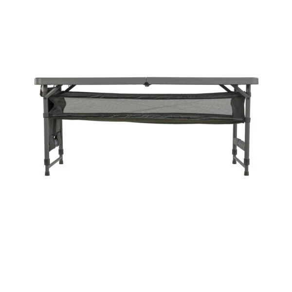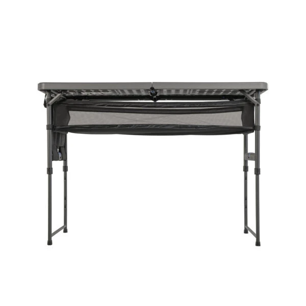 Featuring super-easy single-handed height adjustment mechanism, it goes from low coffee table height right through to preparation table height of 86cm. When it comes to storage – we’ve got you covered. Store pantry essentials and more in the under-table storage hammock and stick your spoons and spatulas in the side storage organiser. Set up and pack down is breeze because you can leave them both attached.