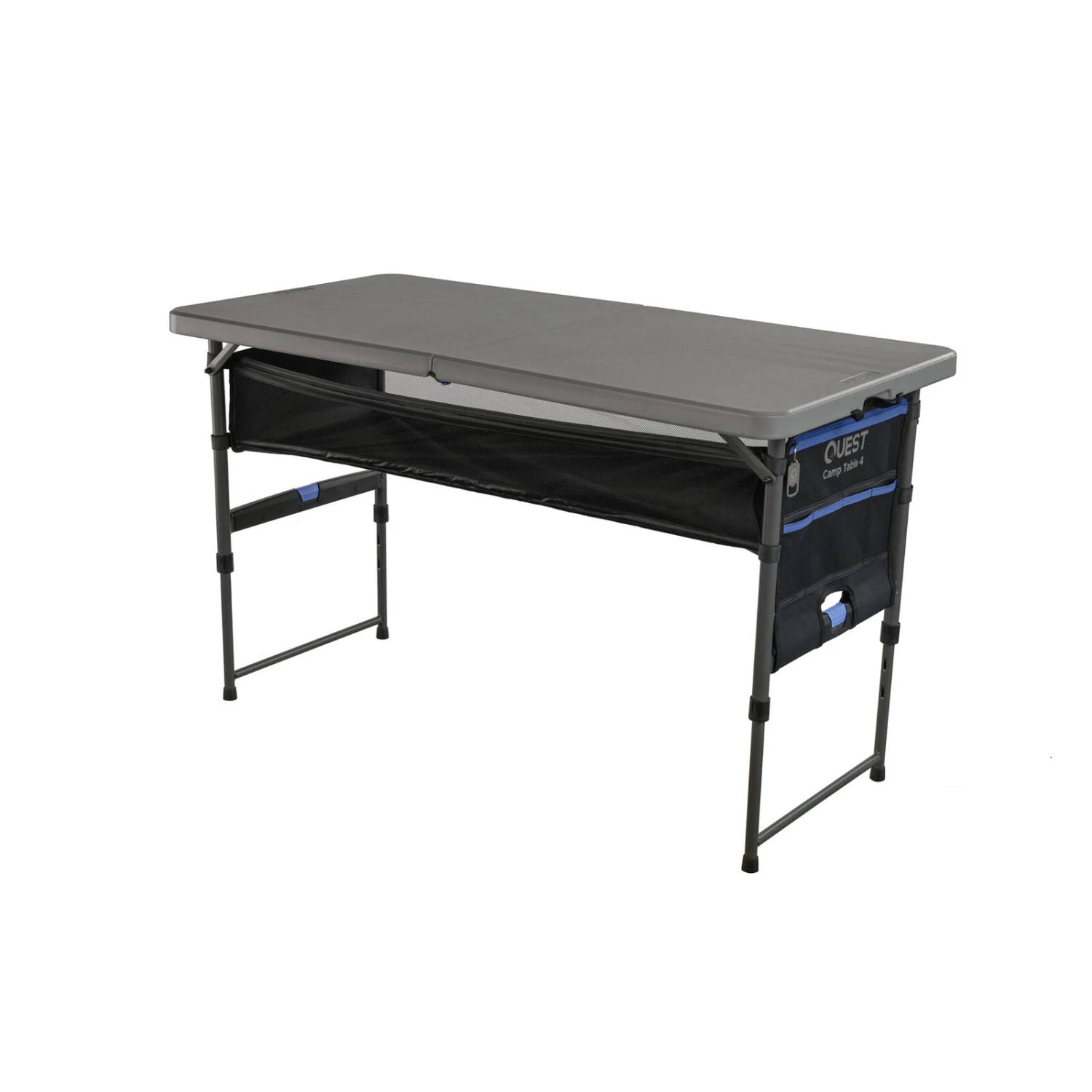 Sturdy, lightweight and super practical – the Quest Camp Table 4 is the ultimate addition to your gear set up. When we teamed a sturdy steel frame and UV protected tabletop with superb storage options we knew we already had a winner. We went ahead and added easy single button height adjustment anyway and made it the handiest camping and outdoor table you can have in the country.