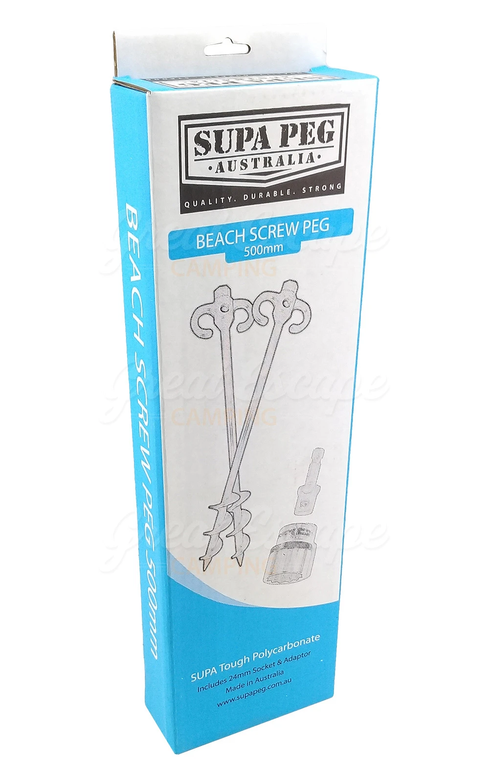 The latest sand screw from Supa-Peg Australia. This new design is strong and flexible and is ideal for all soft terrain. It has incredible holding power due to its 25mm spiral screw and added strength with the 15mm shaft. Made with High visibility yellow polycarbonate plastic and utilising a 24mm socket head it can be easily drilled into the Firm Sand and Soft Soil. Recommended to drill in Vertical.